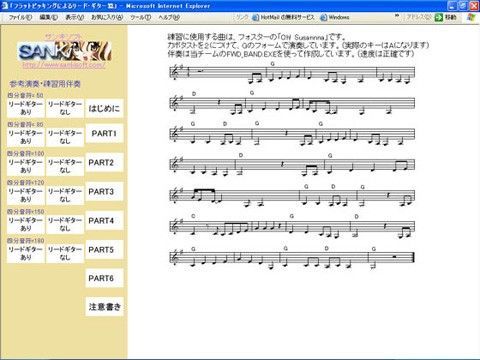 フォークギターによるリードギターの演奏方法の教則HTMLミュージックページです。4種類のポジション違いでのリードギターの紹介と6種類の速度での演奏です。