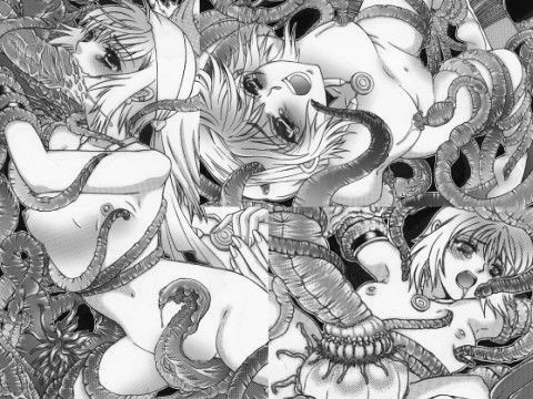 ○い肢体に次々とグロテスクな触手が絡みつき、汗に濡れた白い肌を舐め回す。
