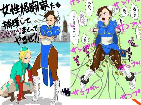 いろいろな女性格闘家たちを拘束して、くすぐり、電マなどで拷問します(イラスト)
