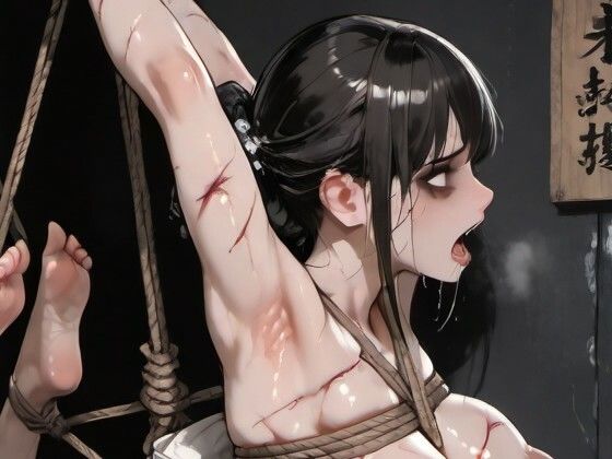 今回の拷問は、吊責め拷問です。和風の拷問蔵の舞台設定です。緊縛された女囚が、駿河問い、逆さ吊などの吊り責め拷問にかけられます。吊られて苦悶する女の姿態をご堪能ください(鬼畜w)。